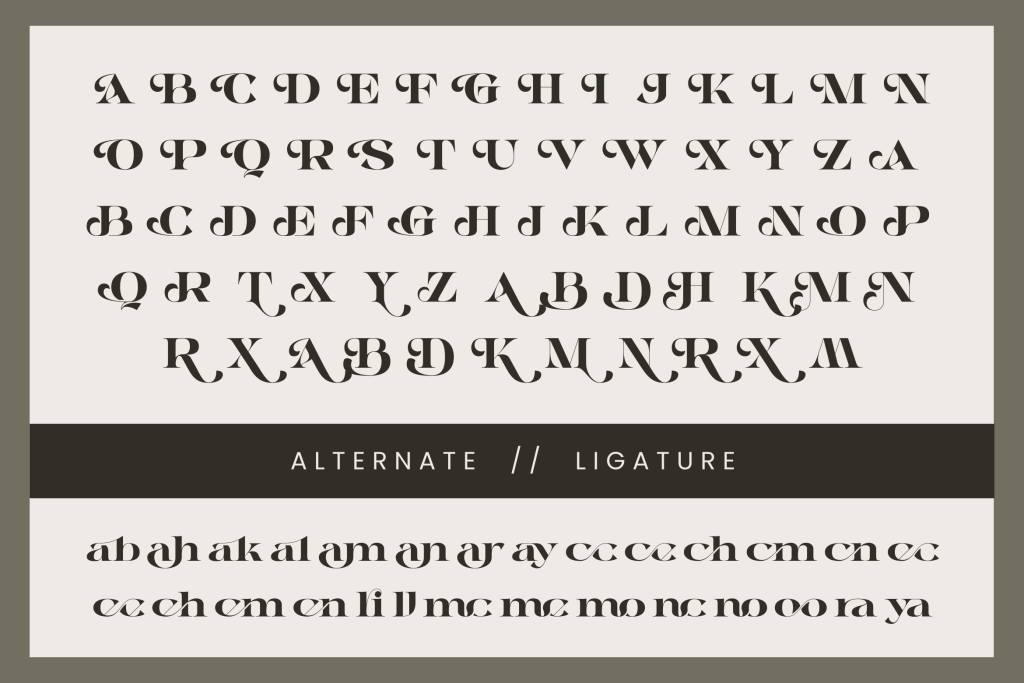 Alrays Bloom is a luxury modern logo font designed to bring elegance and sophistication to premium branding. Featuring rich ligatures, stylish ornaments, and beautiful alternates, this typeface creates a refined and graceful look for logos, wedding designs, beauty brands, and high-end promotions. Its flowing curves and decorative details make every word feel exclusive, perfect for projects that demand a touch of luxury, romance, and timeless elegance.