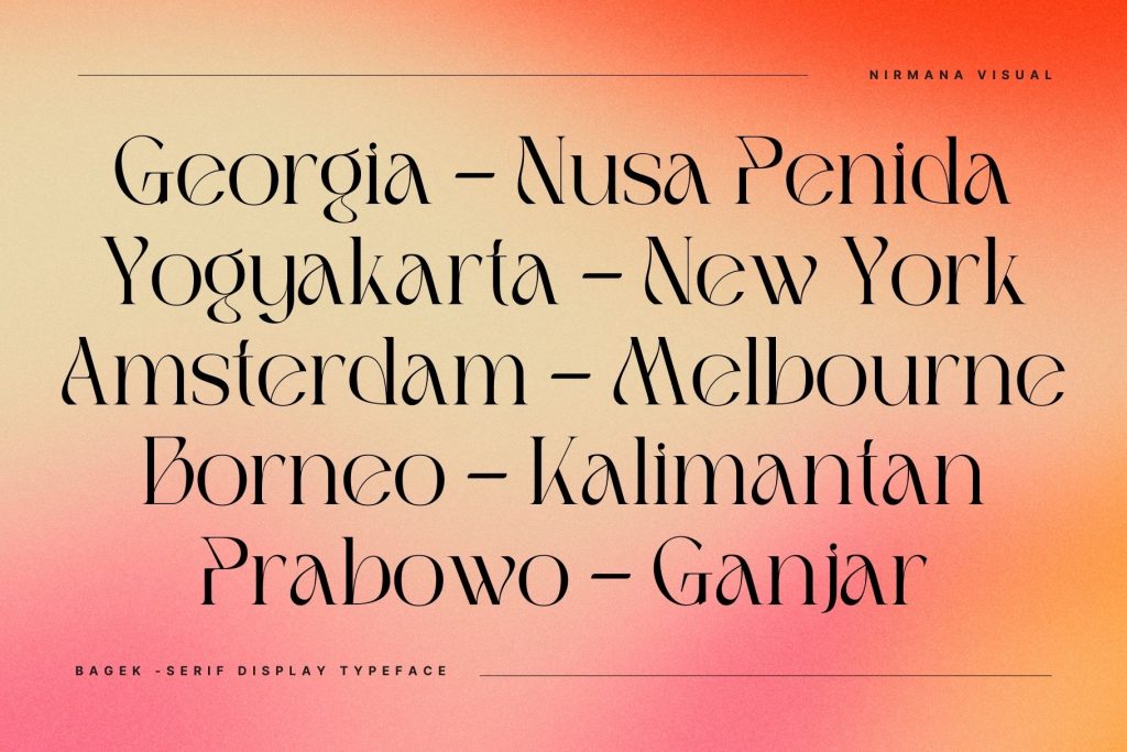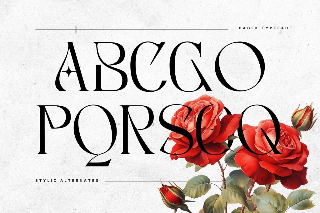 Bagek Display offers beautiful typographic harmony for a diversity of design projects, including logos & branding, social media posts, advertisements & product designs.