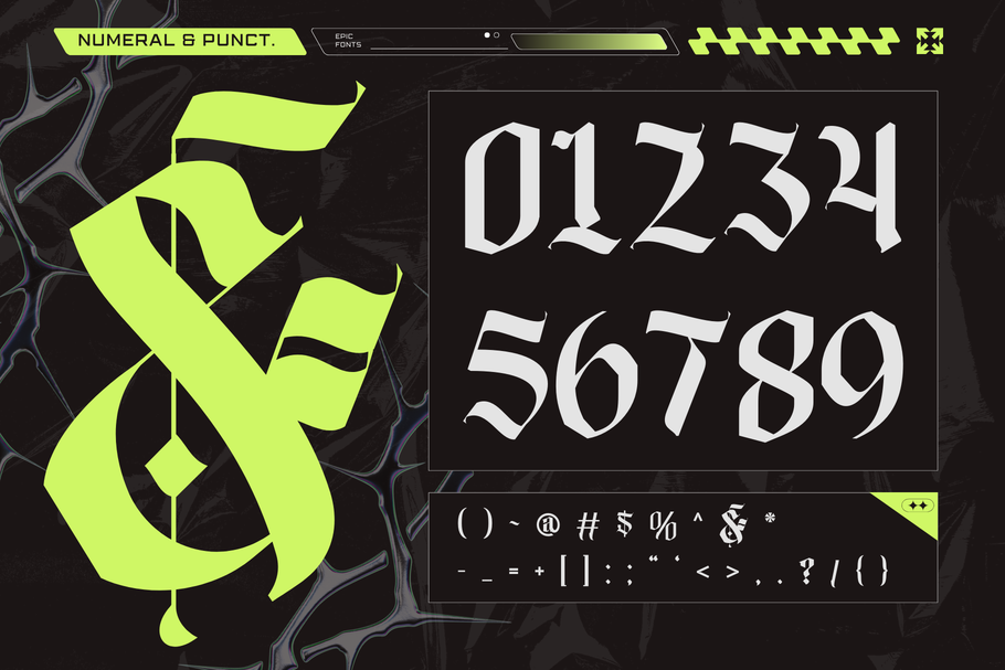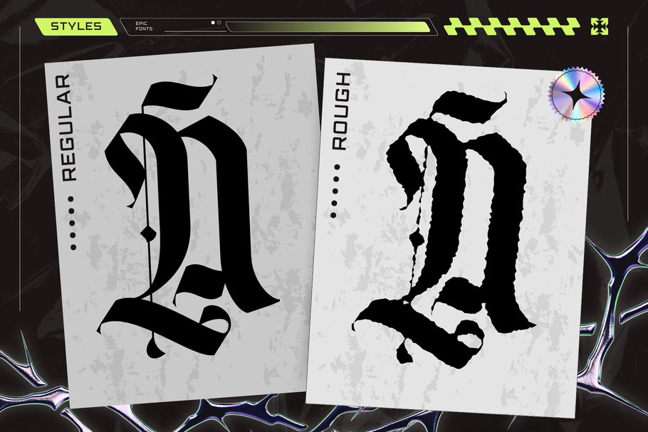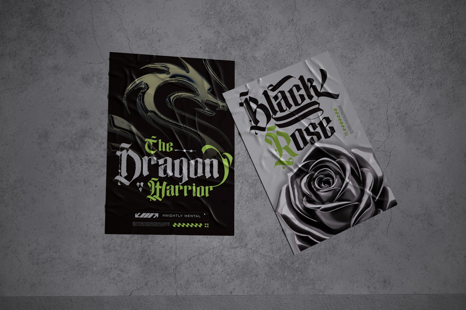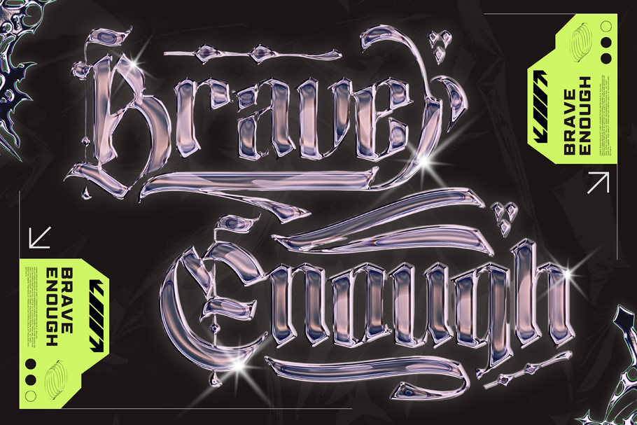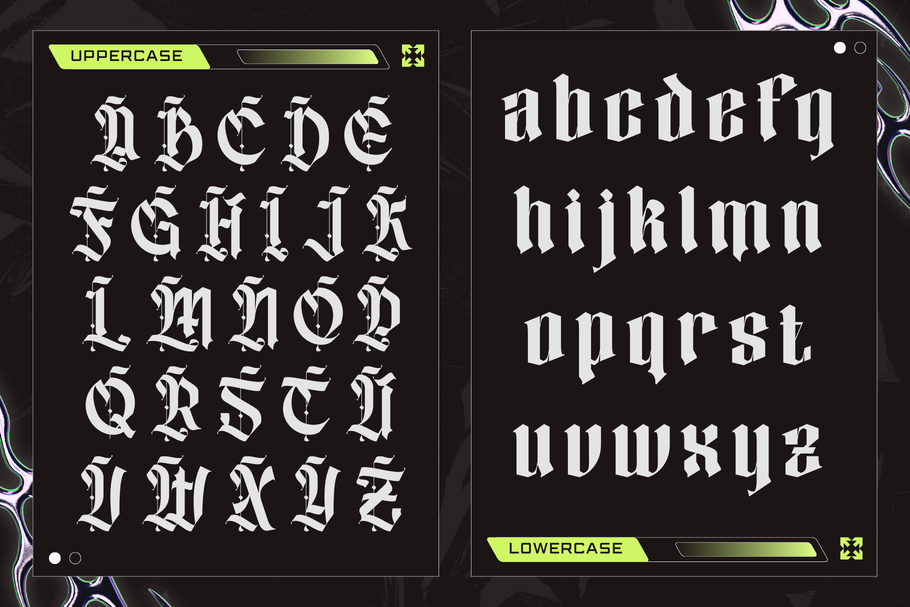 Blime Blackletter is a bold, aggressive type style inspired by classic Gothic calligraphy and modern extreme metal aesthetics. Sharp angles, fractured strokes, and dramatic contrast give it a dark, powerful presence perfect for metal band logos and heavy branding. Its raw, rebellious energy evokes underground culture, intensity, and mystique—making it ideal for album covers, merchandise, and identities that demand a brutal, unforgettable visual impact.