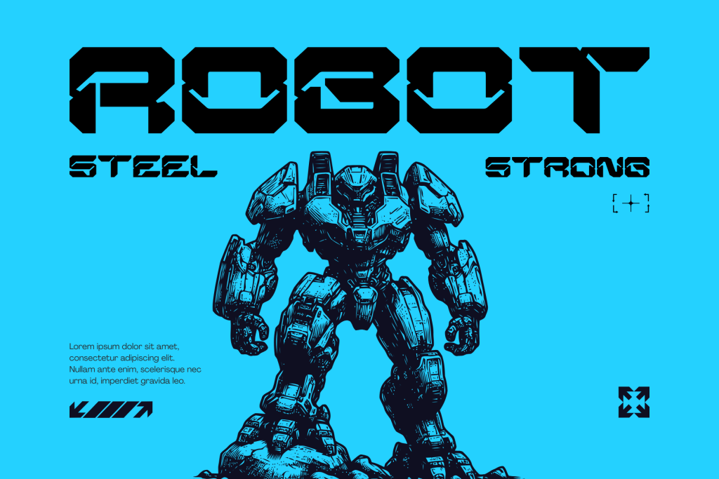 Nexokora Techno offers beautiful typographic harmony for a diversity of design projects, including logos & branding, social media posts, advertisements & product designs.