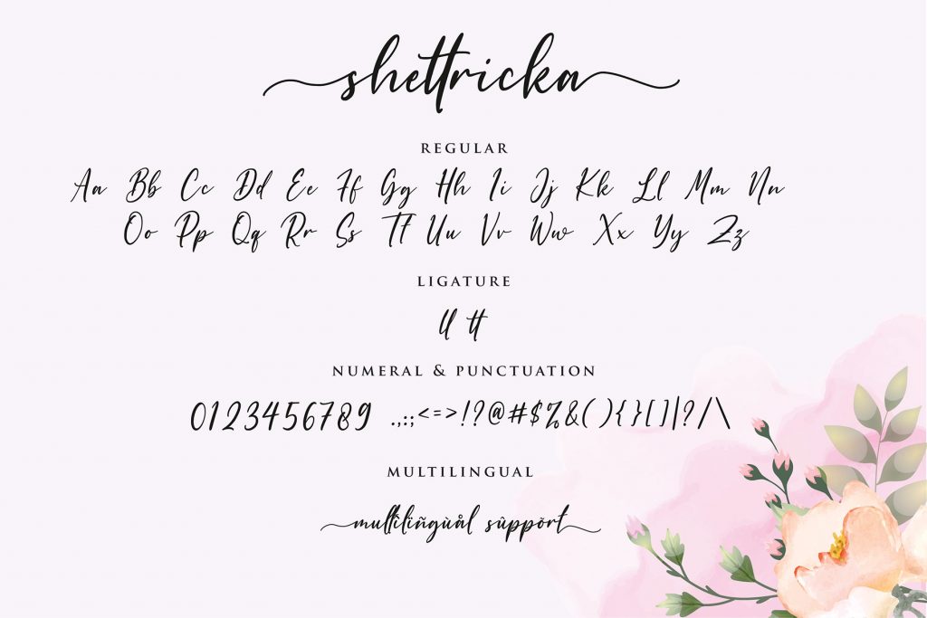 Shettricka is a Beautiful script font carefully created with a touch of romantic.