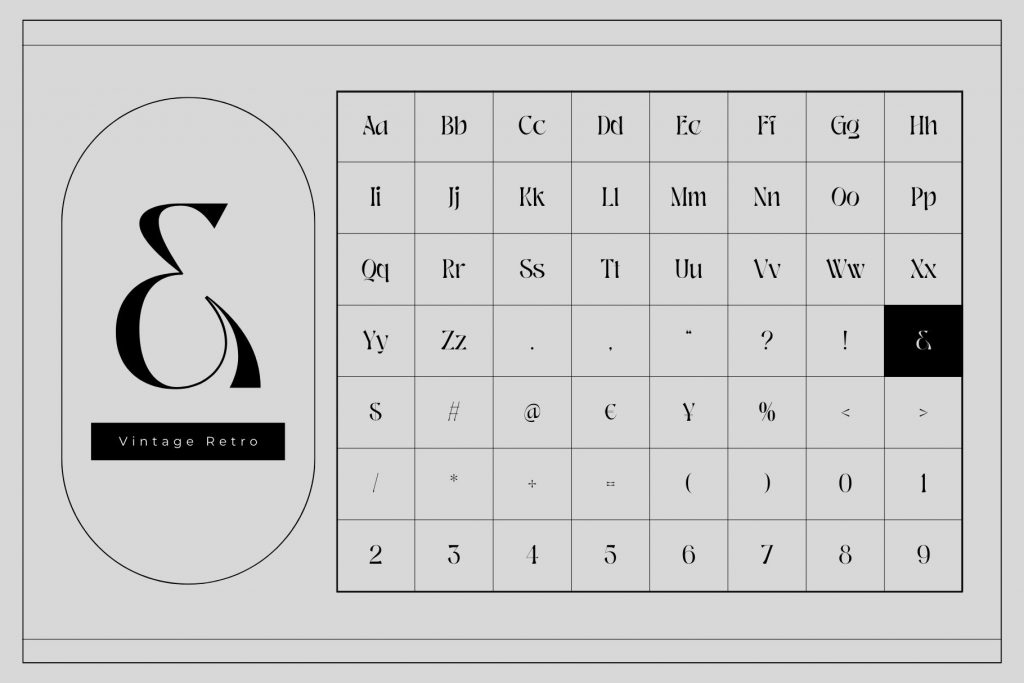 Vintage Retro offers beautiful typographic harmony for a diversity of design projects, including logos & branding, social media posts, advertisements & product designs.